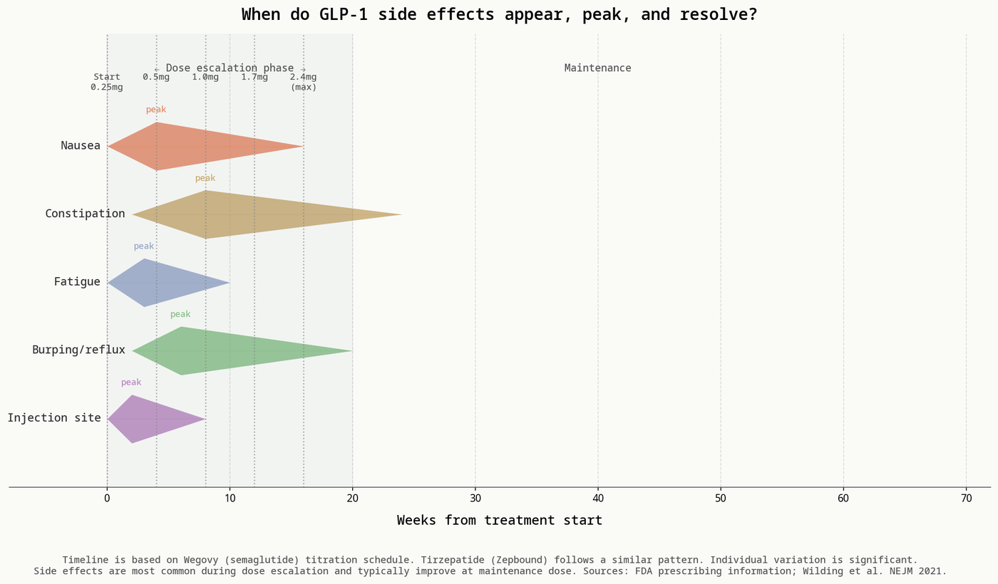 The Wegovy and Zepbound prescribing information both list gastrointestinal adverse reactions among the most common issues. Readers should expect that the first phase of treatment often feels more like adaptation than equilibrium. That does not mean every uncomfortable symptom is normal. It means the baseline expectation should be set around GI disruption, not around a perfectly smooth start.