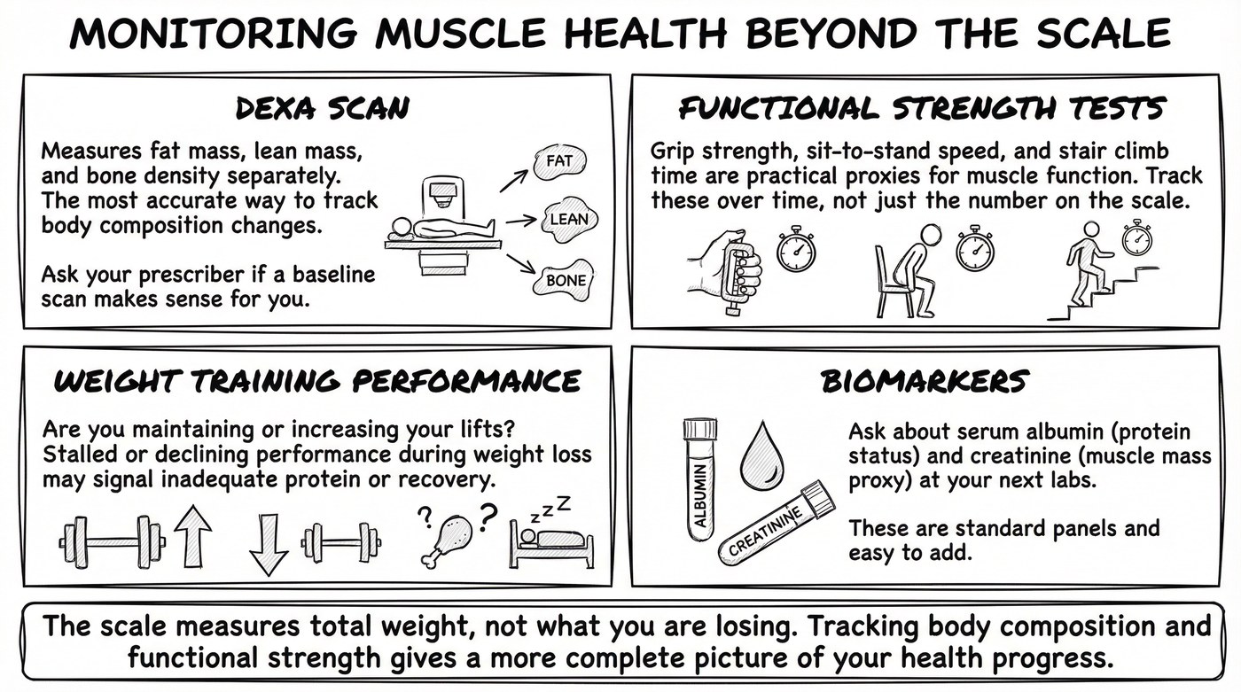 Scale weight alone cannot tell you. Body composition assessment (such as a DEXA scan) can provide more detail, but whether this monitoring is appropriate for your situation is worth discussing with your doctor.
