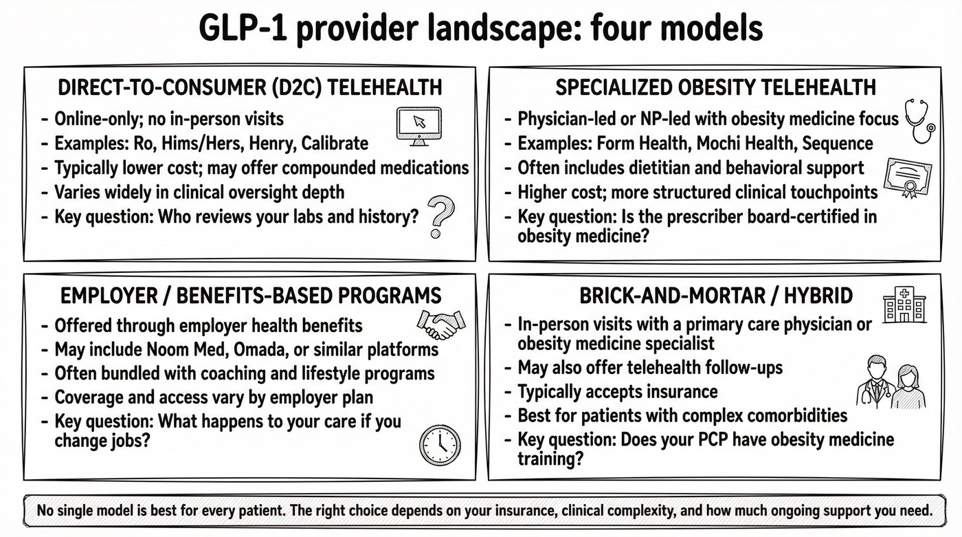 Employer programs vary widely. Some include genuine clinical oversight; others are primarily coaching apps. Use the checklist above to evaluate what's actually included before assuming it constitutes medical care.